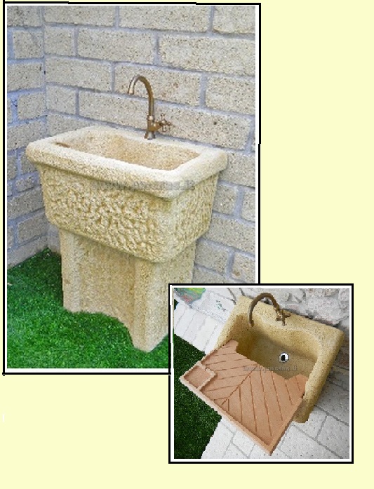 pilozzo si adatta ad ogni tipo di utilizzo, vasca lavapanni, pilozzo lavanderia e lavandino da giardino, realizzato in cemento grigio grezzo o levigato